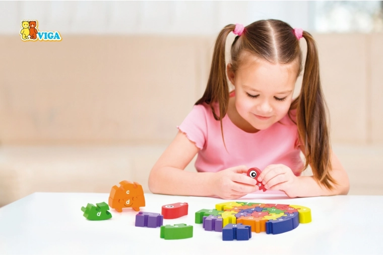 Each puzzle piece is marked with a letter, which helps in learning the alphabet and developing cognitive skills.