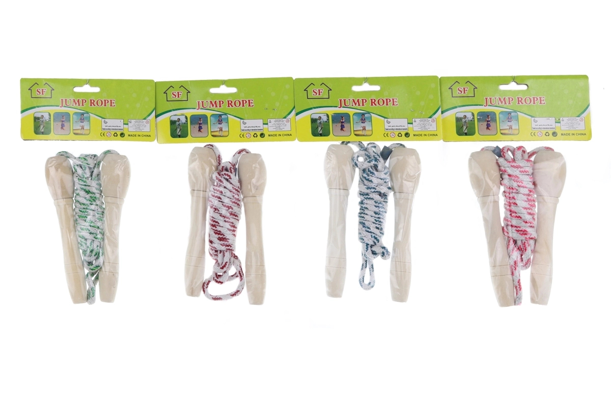 Classic wooden jump rope approximately 2 m long for children aged 3+. Ideal for everyday play and active outdoor movement. Offers easy use, durable construction, and supports coordination, balance, and motor fitness.