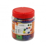 The beads are stored in a durable plastic tub with a lid, which makes both transport and storage simple. The set offers playful learning at home or in preschool and is a great addition to Montessori activities.