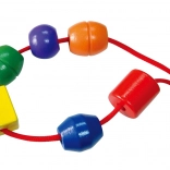 Large wooden beads in a practical tub with colorful laces will delight every child aged 3+. Thanks to the extra-large size, they are easy to grasp and safe to thread, supporting fine motor skills, hand–eye coordination, and recognition of colors and shapes. The set includes 30 beads and 4 laces for endless creations.
