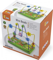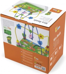 A play maze with beads on wires develops fine motor skills, coordination, and logical thinking. The sturdy wooden farm-themed base and the magnetic farmer figure encourage creative play and discovery. Ideal from 18 months.