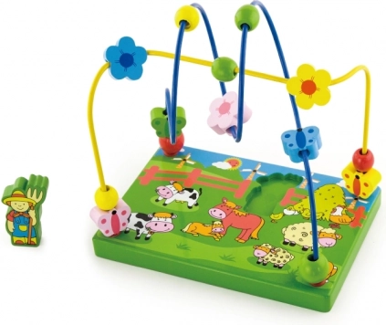 Discover a colorful wooden bead maze with a farm theme that will delight children as they move beads along metal wires and play with the magnetic figure. The stable wooden base with farm illustrations sparks imagination while helping kids focus and coordinate their movements.