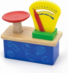 This sturdy wooden scale introduces children to weights and numbers in a fun way. With a simple press of the weighing plate, the needle moves and values appear on the dial—helping kids grasp the basics of measurement and balance. With cheerful colors and a clear scale, it's a great addition to a play kitchen or pretend store corner.