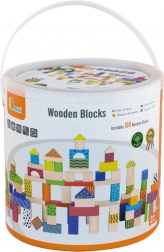 Discover a fun set of wooden blocks for little builders! In the bucket you’ll find 100 pieces in various shapes and colors, plus a picture booklet with building ideas. Playing with blocks supports fine motor skills, creativity, and spatial imagination—ideal for children aged 2+. The practical bucket with handle makes storage and carrying easy.