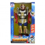 This battery-powered plastic robot is an ideal toy for children aged 3 and up. Its light and sound effects will captivate kids and spark their imagination. The robot can walk, and its interactive movements include turning and moving a sword and shield.