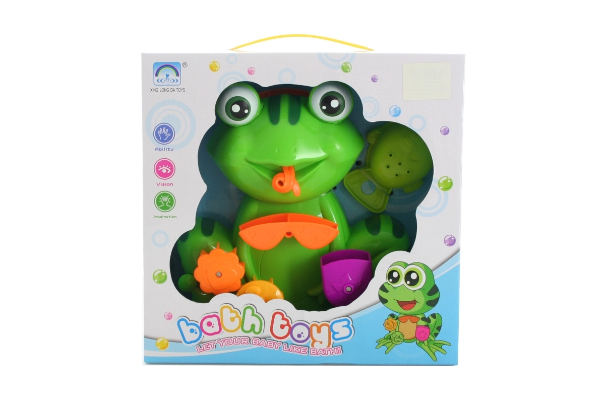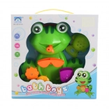 A fun plastic frog for the bath with easy suction-cup mounting turns every bath time into a game. It also includes an adorable fish-shaped cup for pouring water. Ideal for children from 3 years. Easy attachment, water play and fine motor development, durable plastic, and safe bath-time fun.