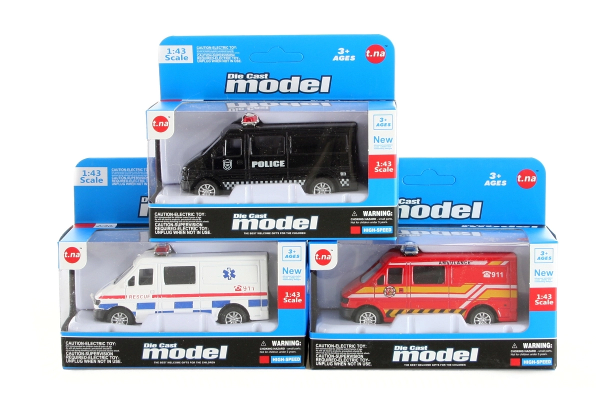 Discover realistic metal rescue cars for little heroes. Models measuring approximately 9.5 × 4 cm feature a durable metal build, freewheel action for easy rolling, and are ideal for children aged 3+.