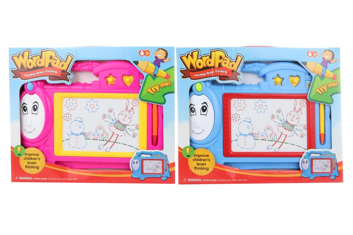The Train Drawing Board offers kids endless creative possibilities. Thanks to the magnetic surface, little artists can draw again and again — simply slide to erase the picture and start from scratch. The plastic design is lightweight and durable, making it great for travel.