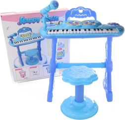 Blue children's piano offers not only classic tones but also various background melodies and the ability to change musical instruments. Included in the package is a microphone and a connector for an MP3 player.