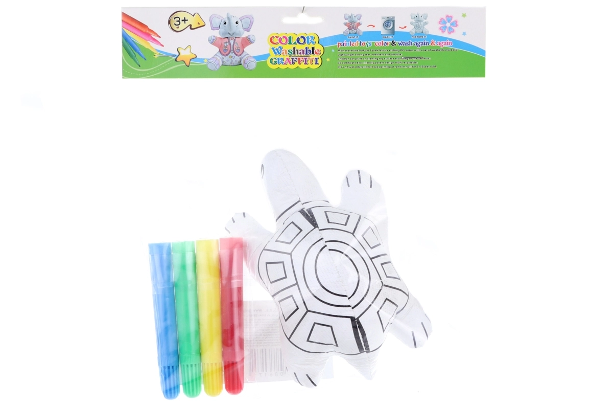 Discover creative fun with this coloring turtle that kids can color, wash, and decorate again and again. The set includes 4 colored markers, a safe polyester material, and a size ideal for small hands. A great gift for children ages 3+.