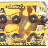 Build your own construction site with this colorful set of screw-together vehicles. Kids can easily assemble and disassemble the loader, excavator, mixer, and dump truck using the included screwdriver and wrench. Play supports creativity and coordination skills and teaches patience through fun.