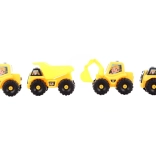 • Box contents: loader, excavator, mixer, dump truck, screwdriver, wrench