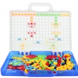 Everything is stored in a portable carry case whose lid doubles as a pegboard, making the set easy to transport and tidy away. A great tool for developing motor skills, hand–eye coordination, creativity, and patience.
