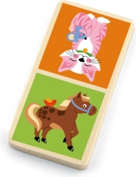 Delight your children with the classic game domino themed around a Farm by Viga. This Montessori product is designed for the youngest to learn through play. The colorful tiles with cute farm animal illustrations not only entertain but also develop important skills.