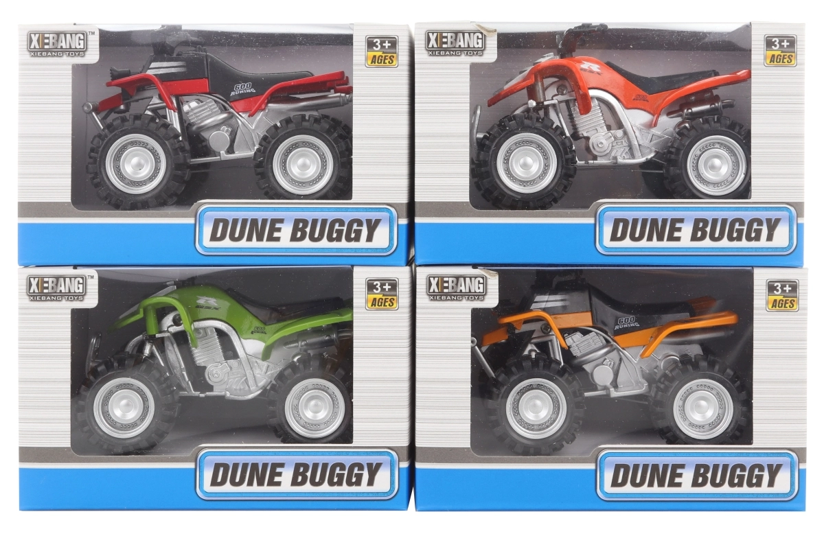 This quad bike model is ideal for young fans of off-road machines. Metal parts increase durability, while plastic accessories add detail and lightness. The toy is designed to handle everyday kids’ races and imaginative adventures.