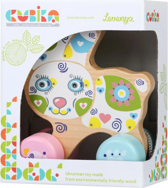 Pull-Along Rabbit by Cubika is the ideal travel companion for young children, made from eco-friendly wood and safe colors.