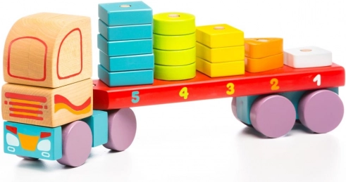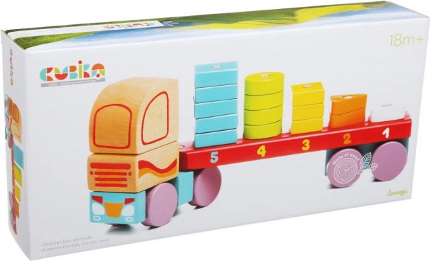 The Wooden Puzzle CUBIKA Truck with geometric shapes is more than just a toy. With 19 colorful pieces, it teaches children to match shapes and colors, enhancing their sensory-motor skills. Each part is designed to fit into others, and advanced builders can verify the correctness of the assembled number of pieces against the digits on the truck's chassis.