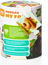 Large, thick cardboard pieces are easy for children to hold and assemble. The puzzles come in a practical closable tube with a handle, making them perfect for travel or as a gift. Thanks to clear illustrations and intuitive piece shapes, assembly feels natural and motivating even for the youngest learners.