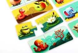 The fun Puzzlika My Home set teaches children to match animals with their homes. It includes 20 large sturdy pieces forming 10 pairs. It supports logical thinking, fine motor skills, learning about animals and environments, and visual perception. Made from durable multilayer cardboard with a glossy finish, it’s easy to clean and ideal for preschoolers.
