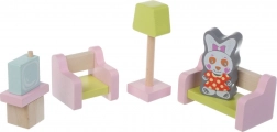 Discover the magic of Cubika toys with this doll living room set made from sustainably sourced wood with precise craftsmanship and a modern design. This set includes 9 pieces, including a wooden sofa, armchair, and magnetic accessories.