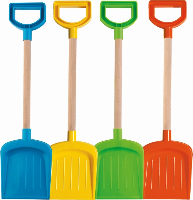 A practical kids' shovel with a wooden handle and a comfortable plastic grip, ideal for sand and garden play. Made in Italy from high-quality, durable, and flexible plastics that withstand frequent use in kindergartens. Length 53 cm, suitable from 12 months.