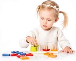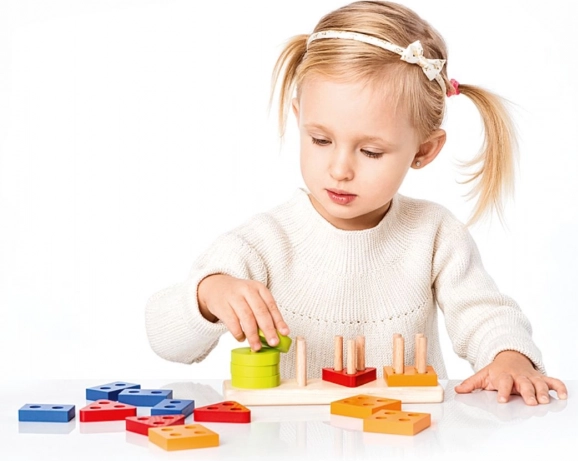 - Educational benefits: shape and color sorting, early counting, development of fine motor skills