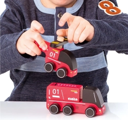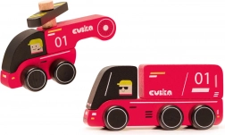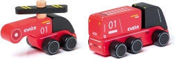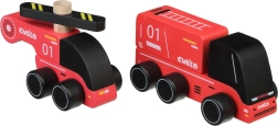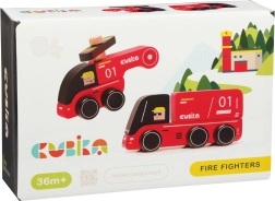 Treat kids to creative play with the wooden CUBIKA Firefighters set. The set includes a fire truck and a helicopter made of top-quality maple and beech wood, coated with odorless water-based paints. Thanks to rounded edges and careful workmanship, they fit well even in small hands and foster sensorimotor skills, logical thinking, and creativity.