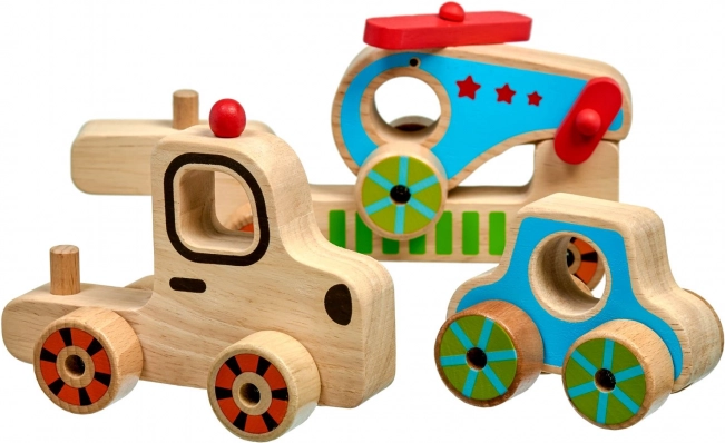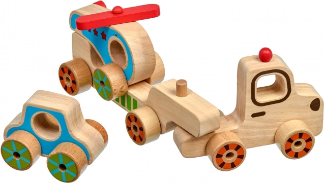 The set is made of quality wood with rounded edges for safe play. Thanks to its durable design, it stands up to everyday use and will become a favorite toy at home or in preschool. A great gift for children who love vehicles and machines.