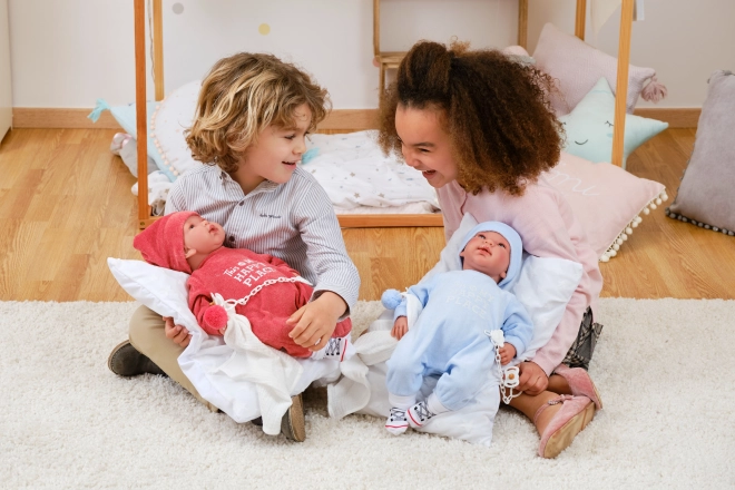 A cute outfit set for the NEW BORN doll by Llorens in size 43–44 cm will delight every little caregiver. It includes a 3-piece outfit, a soft pillow/mat, and a cuddly pocket cloth with a pom-pom. Quality Spanish craftsmanship, pleasant materials, and a safe design for children from 3 years.