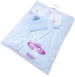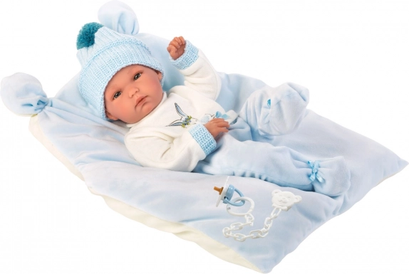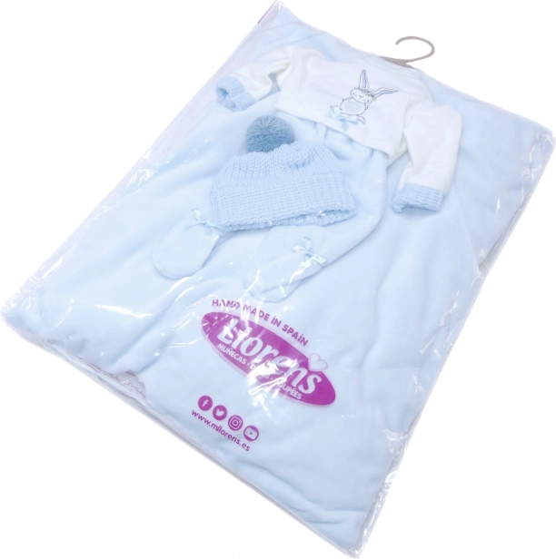 Clothes for doll from the New Born collection are ideal for dolls sized 35-36 cm. This adorable clothing set includes 3 pieces and a pillow, which can be used as a mat. It is made in Spain and the packaging includes a plastic bag with a plastic or cardboard hanger. Suitable for children aged 3 and up.