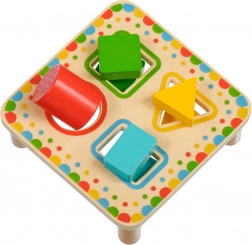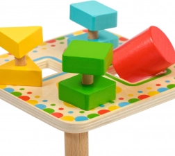 The board on stable legs has four color-framed openings that match the colors of each piece. The set is ideal for independent play or shared discovery with parents and makes a great quality wooden educational toy for preschoolers.