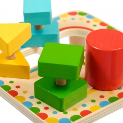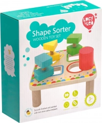 The clever wooden shape sorter from Lucy & Leo develops logical thinking, fine motor skills, and patience. It includes 3 two-piece elements that must be correctly assembled and rotated to pass through the board openings, plus one cylinder. Color-coded frames guide children to recognize shapes and colors while solving fun tasks.