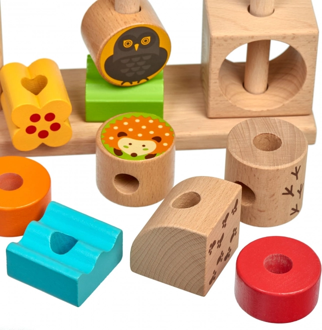 The stable platform and three pegs make it easier to sort pieces correctly. Children practice fine motor skills and hand–eye coordination while threading and stacking.