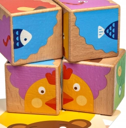 The blocks are made of quality wood and have a safe, non-toxic, saliva-resistant finish. Bright colors and friendly illustrations catch the eye at first glance and support learning colors and animal names. An ideal choice as a first puzzle for children aged 3 and up.