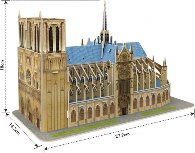 CubicFun 3D Puzzle Notre-Dame Cathedral, 53 pieces. Realistic model, easy assembly without glue, difficulty 4/5, dimensions 27.2×18×14.2 cm.