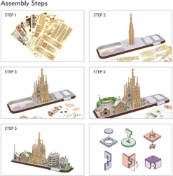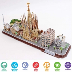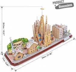 The 3D City Line Barcelona puzzle is exciting fun for both children and adults. Cityline is a unique series by the manufacturer Cubic Fun that showcases a city’s skyline along with its most characteristic landmarks. The package includes 186 pieces made from a special foam material. The puzzle pieces are numbered, pre-cut, and arranged on sheets. Simply press the pieces out of the sheets without force and assemble them by following the included instructions—no glue or special tools required.
