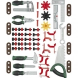 The set includes everything needed for first DIY projects — from a saw and hammer to files and wrenches, plus screws, nuts, and connectors. Playing with the workshop develops hand–eye coordination, logical thinking, and patience, while delivering hours of fun.