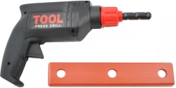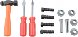 • Realistic features: rotating drill bit, movable saw, screwdrivers for included screws and nuts.