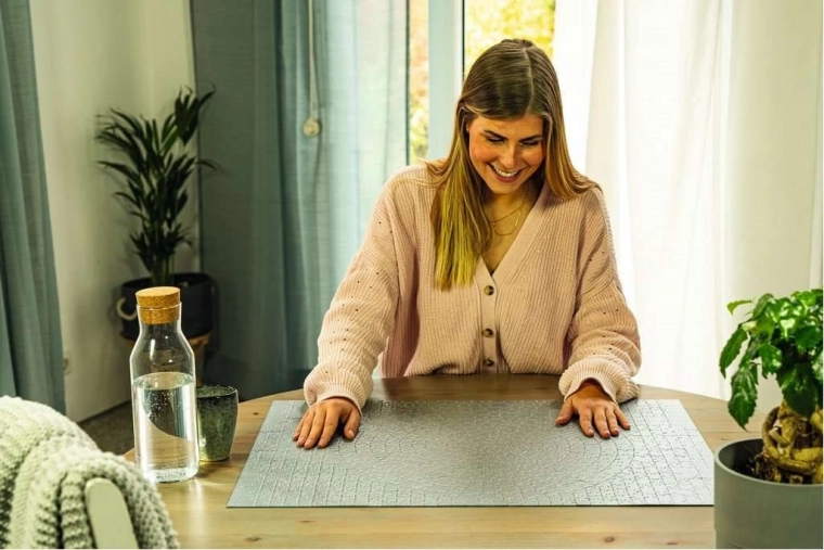 The RAVENSBURGER KRYPT silver puzzle is a legendary challenge for everyone who enjoys true focus. The monochrome silver surface and circular shape without an image reference take puzzling to a new level – you rely on the shape of the pieces, their interlocking relationships, and the spiral pattern that gradually leads you to completion.