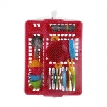 A cheerful children's kitchen set in a practical drainer brings hours of creative fun. It includes everything little chefs need: plates, cups with saucers, cutlery, a pot with a lid, and pans. The vibrant colors catch the eye and develop imagination, fine motor skills, and tidy habits—after “cooking,” the dishes are simply placed in the drainer just like mom does.