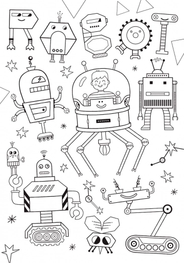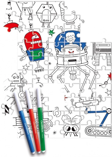 One side is a classic puzzle with a robot theme, the other is ready to color—an ideal combo for creative play.