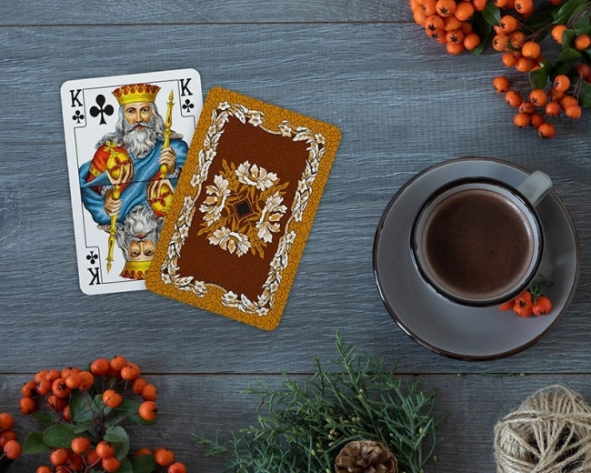 Discover the timeless quality of cards from the Vienna-based brand Piatnik. The “Oak Leaves” design combines elegant face cards on the front with the distinctive oak leaf motif on the back and packaging. Thanks to meticulous craftsmanship and a laminated surface, the cards resist wear and glide smoothly when dealing.