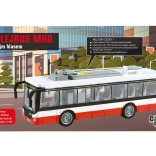 This detailed trolleybus gives kids an authentic taste of urban transport. The toy plays stop announcements in Czech (Main Station, City Theatre, Zoo) and features attractive light effects. With the friction drive, just push the trolleybus and it will roll forward.