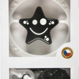 A practical black-and-white rattle set for babies combining a stroller chain and a separate rattle in the shape of a star or a flower. The high-contrast colors support visual perception, while the gentle sound and safe shapes develop your baby’s motor skills and senses. The rattles are designed for an easy grip and meet strict hygiene standards. No sharp edges, no small detachable parts, and ideal for everyday play at home and on the go.