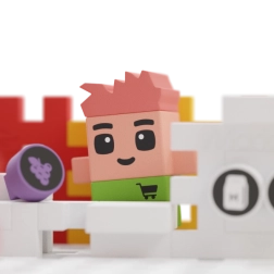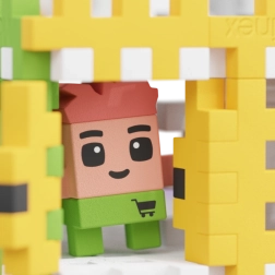 Build the most popular shop in town and help the shop assistant Ron serve regular customer Laura. Kids will enjoy realistic scenes and fun stories—from restocking shelves to selling fresh food. The set is compatible with other Waffle City series kits, so the small town can keep growing.