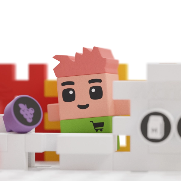 Discover the creative Mini Waffle City – Shop building set with 148 pieces and 2 figures, letting kids build their own city store. Thanks to the easy-to-connect Mini Waffle pieces, children practice fine motor skills, creativity, and spatial thinking. The box includes a detailed manual and themed accessories—from fruit and milk to fish from the local harbor.