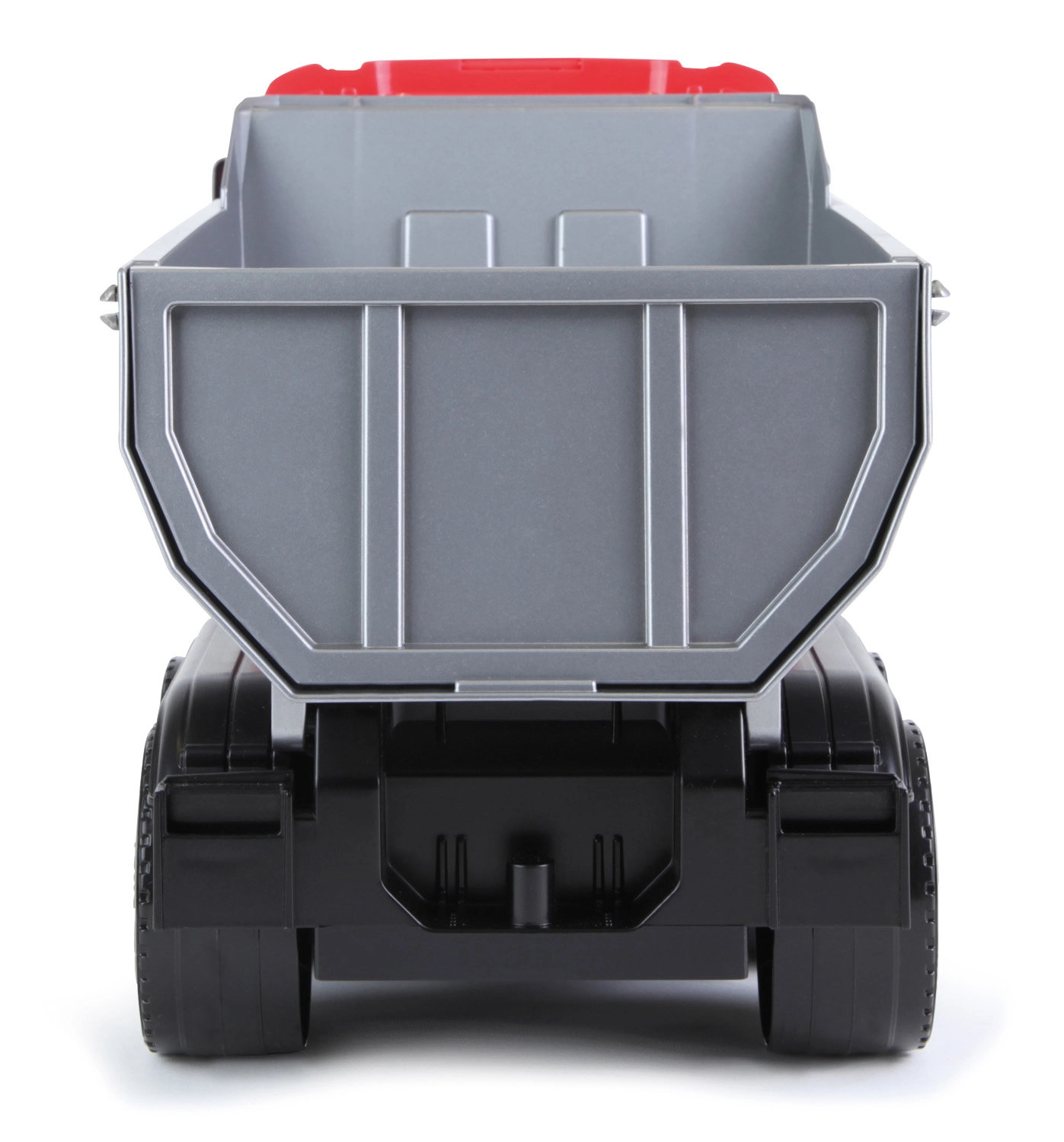 The modern red-and-black model is equipped with 6 mm galvanized steel axles for maximum durability. The practical dump bed tilts and can be locked in the closed position, making it easy to transport sand, pebbles, and other loads.