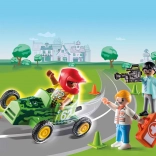 With Playmobil Rescue Action, you'll experience dramatic moments during the go-kart race. The driver suddenly loses control of the vehicle, but Doctor Mikey is instantly on the scene to provide the needed help. Everything turns out well, ensuring hours of play with a story.