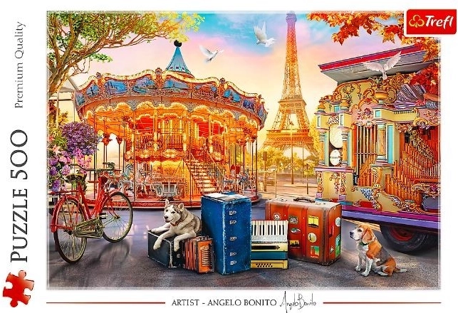 TREFL puzzle 500 pieces with a holidays-in-Paris motif. High-quality calendered paper without glare, finished size 580 × 340 mm, eco-friendly production.