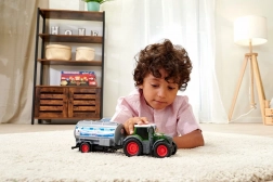 The tractor with milk trailer is ideal for a little fan of agricultural vehicles! It has been made with exceptional attention to detail. Features light and sound functions. Length: 26 cm.